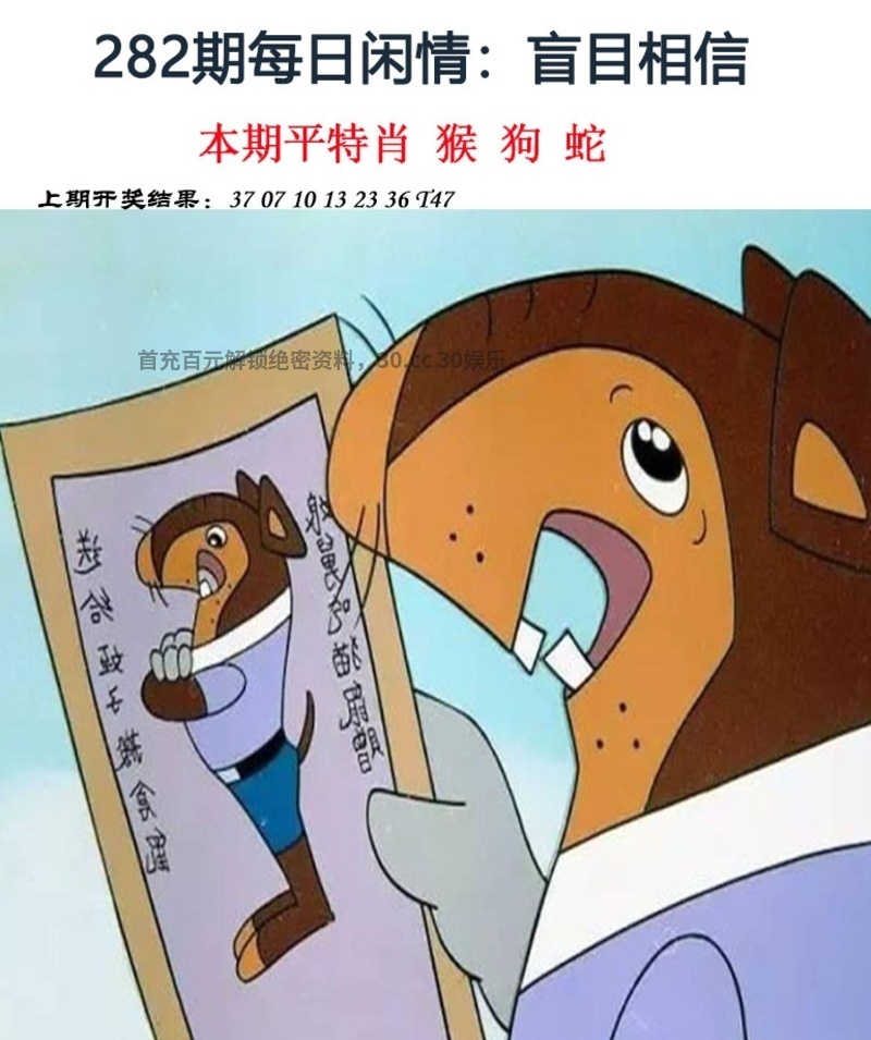 282期:凶吉二肖【吉美+猴狗】开:牛41错 |